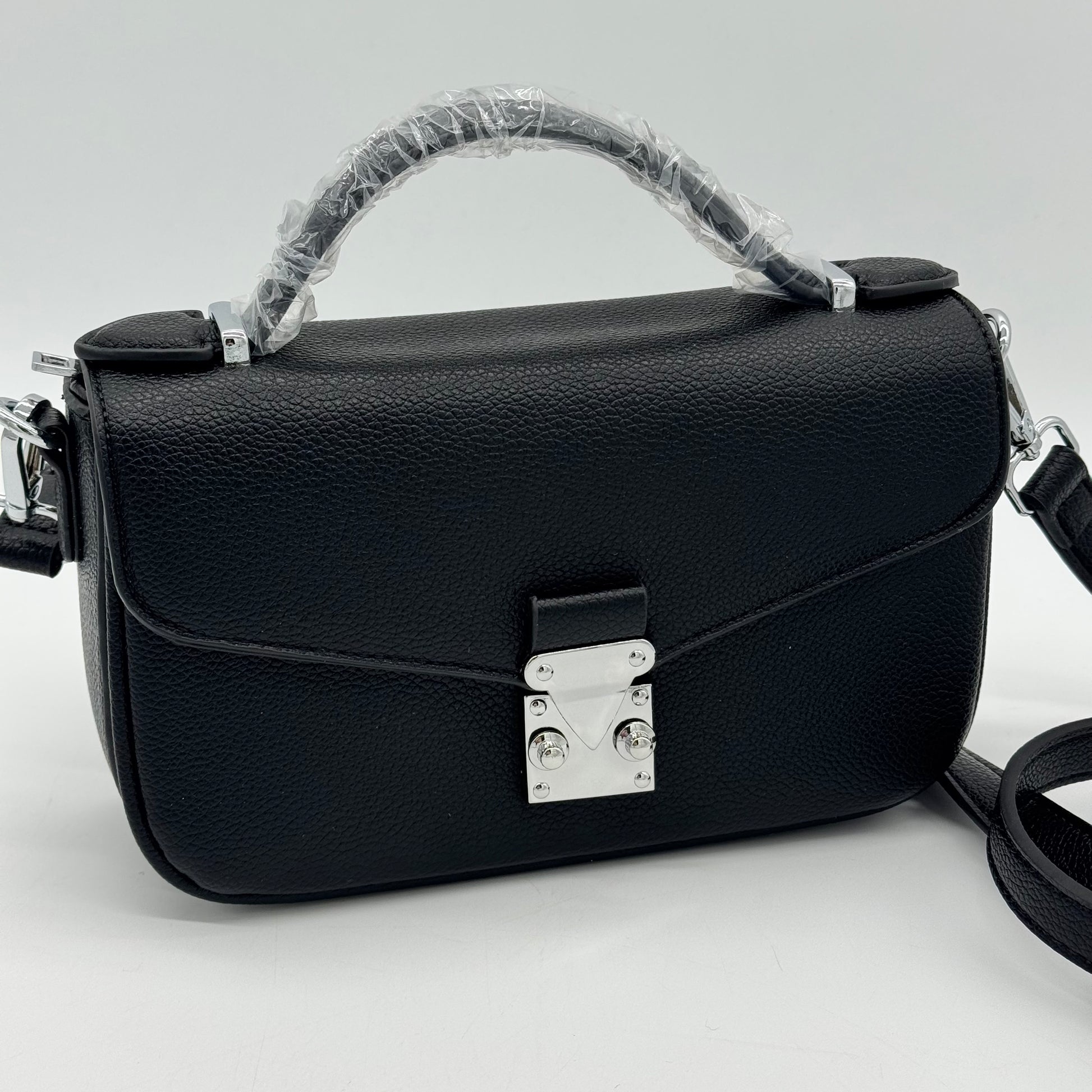 Faux Leather Crossbody Lock Grab Bag
