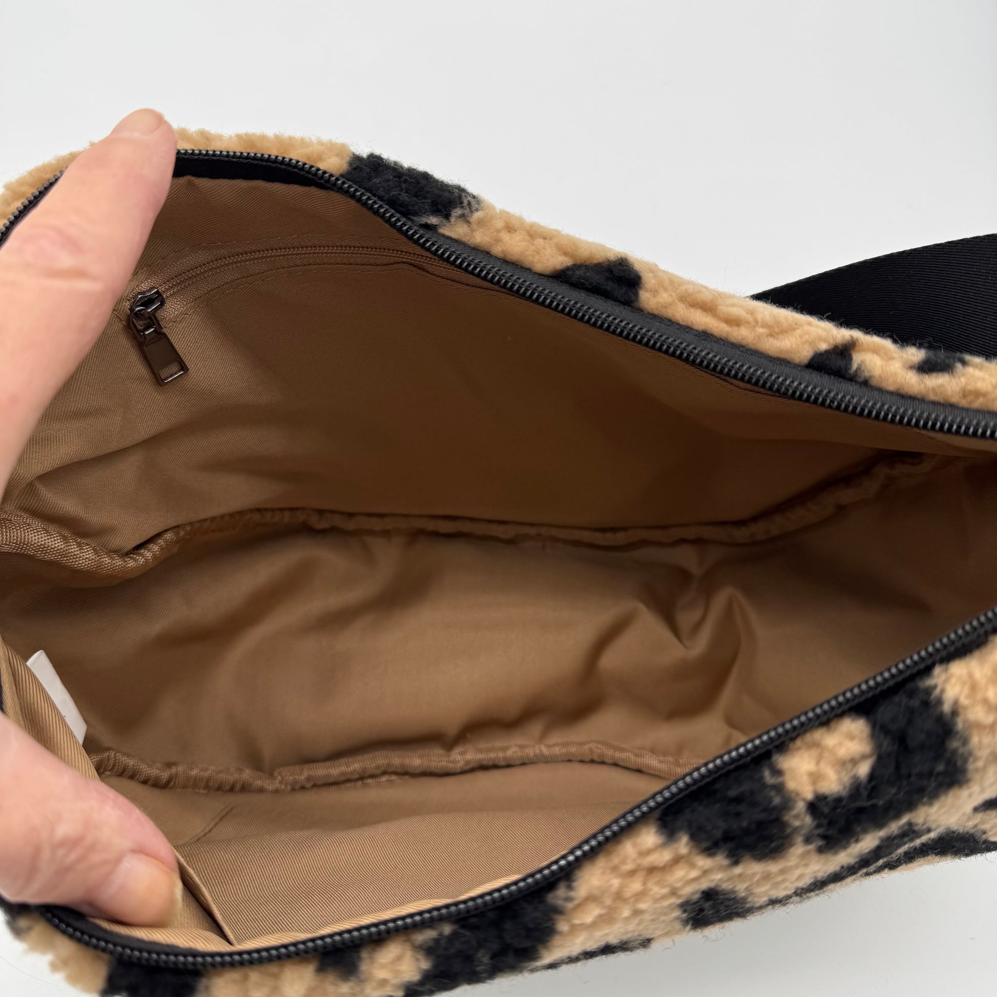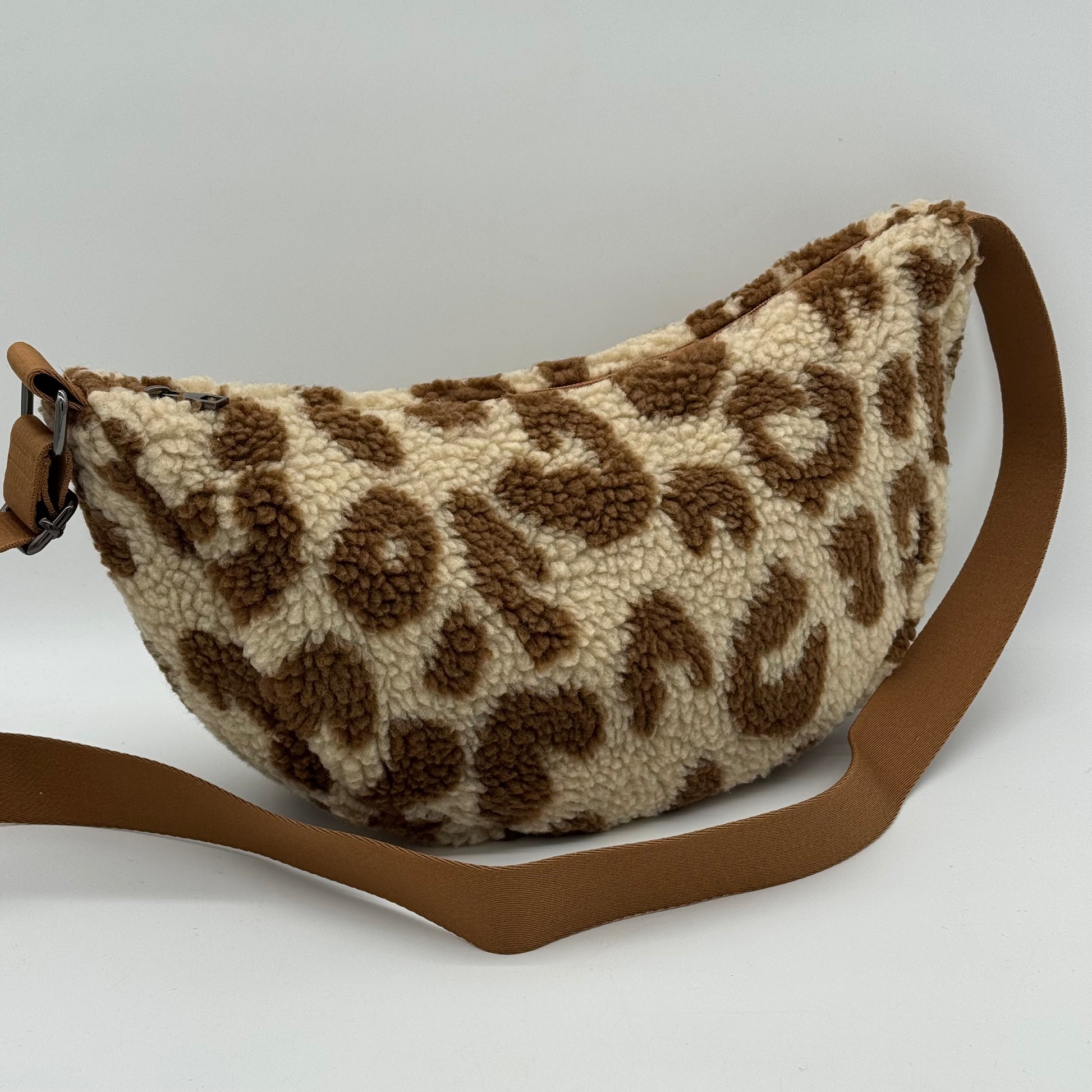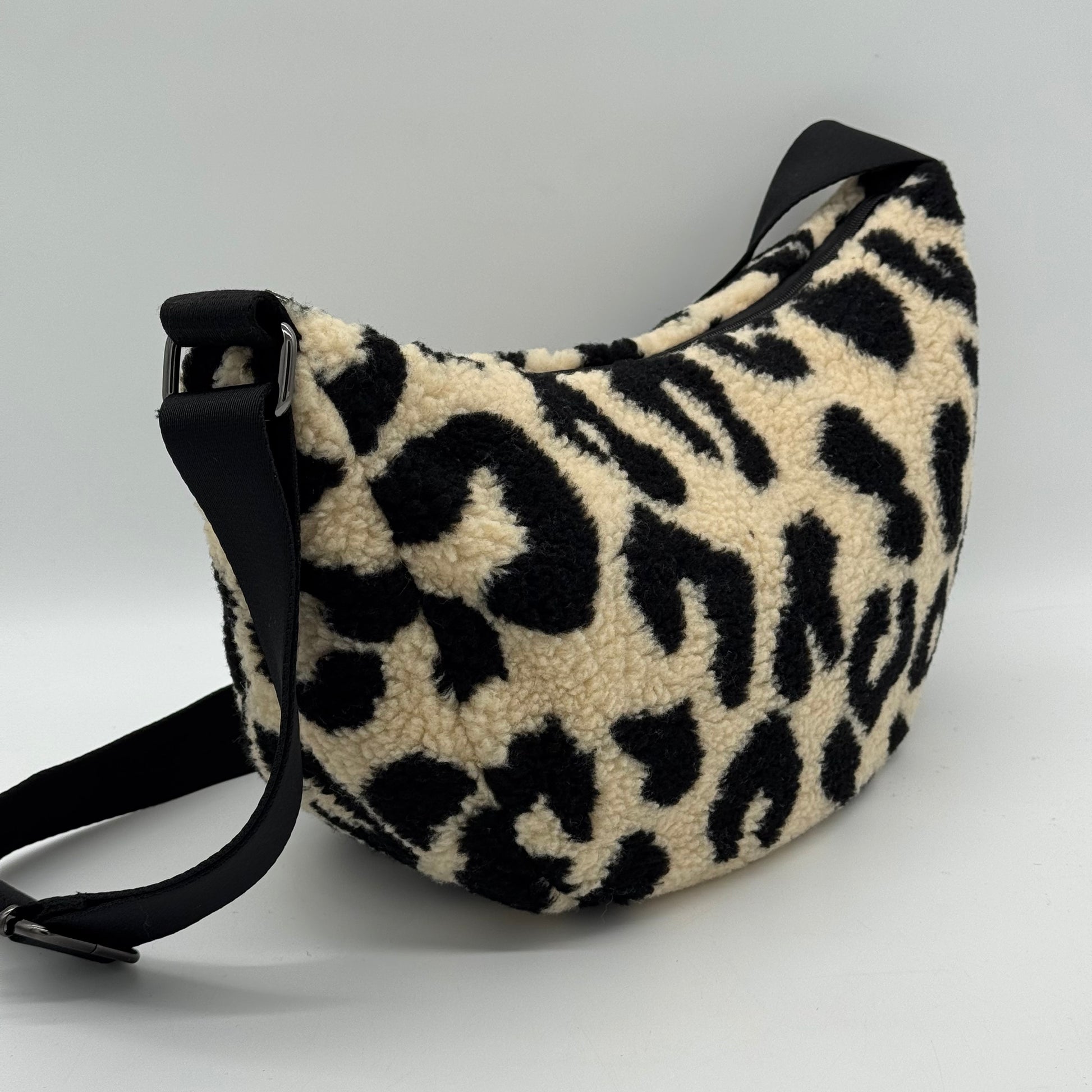 Meet your new go-to bag. This plush Leopard Print faux teddy fur dumpling style comes equipped with a crossbody strap for effortless carrying, a zip closure to keep things secure, and a lined interior for organised storage. Soft, stylish, and wonderfully practical.