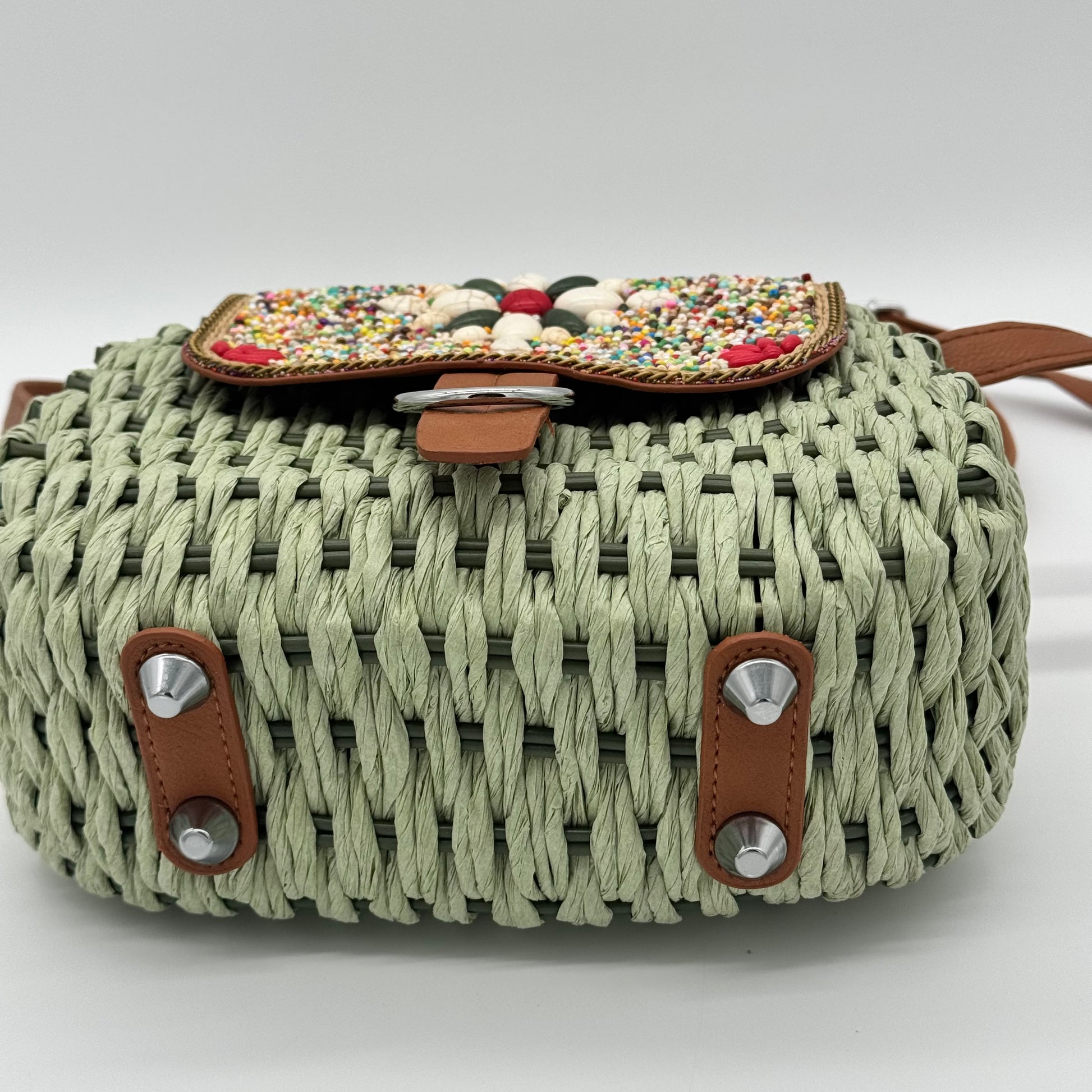 Straw Beaded Crossbody Bag