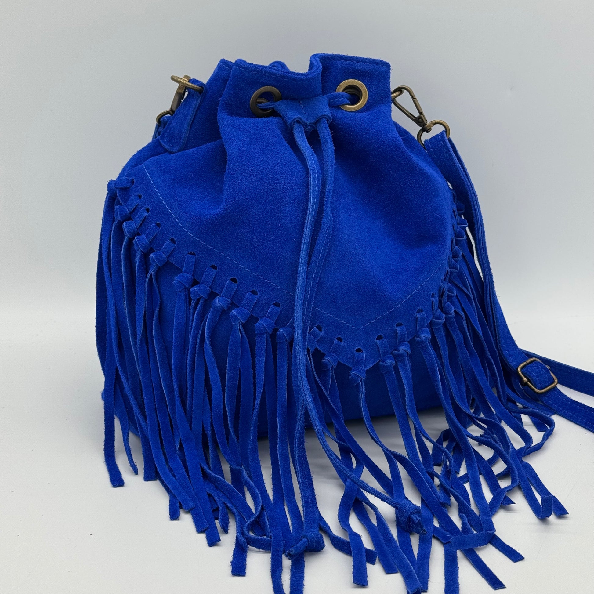 This Suede Fringing Crossbody Bag combines western flair with practical design. Crafted in a duffle bucket shape, it features a secure drawstring closure and a fully lined interior for added durability. The removable, adjustable strap allows versatile wear options, making it an expert choice for style and functionality in everyday use.